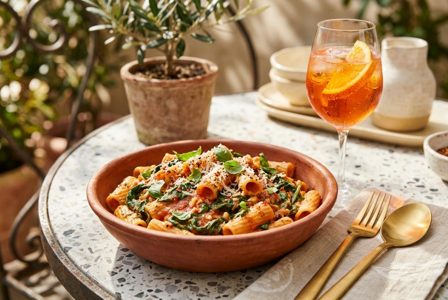 This sauce draws from the practical kitchens of Modena in the 1950s. During the post-war era, local cooks began mixing canned tomatoes with cream cheese introduced through aid programs. Born from the habits of cucina povera, the recipe used cheap spinach to add bulk and nutrition for factory workers. The flavor profile features a bright acidity from tomatoes that cuts through the rich cream cheese. Garlic and dried herbs provide a savory foundation, while a hint of red pepper adds gentle warmth. Unlike heavy cream, the cream cheese whisks into a thick, stable sauce that coats pasta evenly and stays silky without separating. It is a hearty, budget-friendly dish that turns simple pantry staples into a satisfying meal.